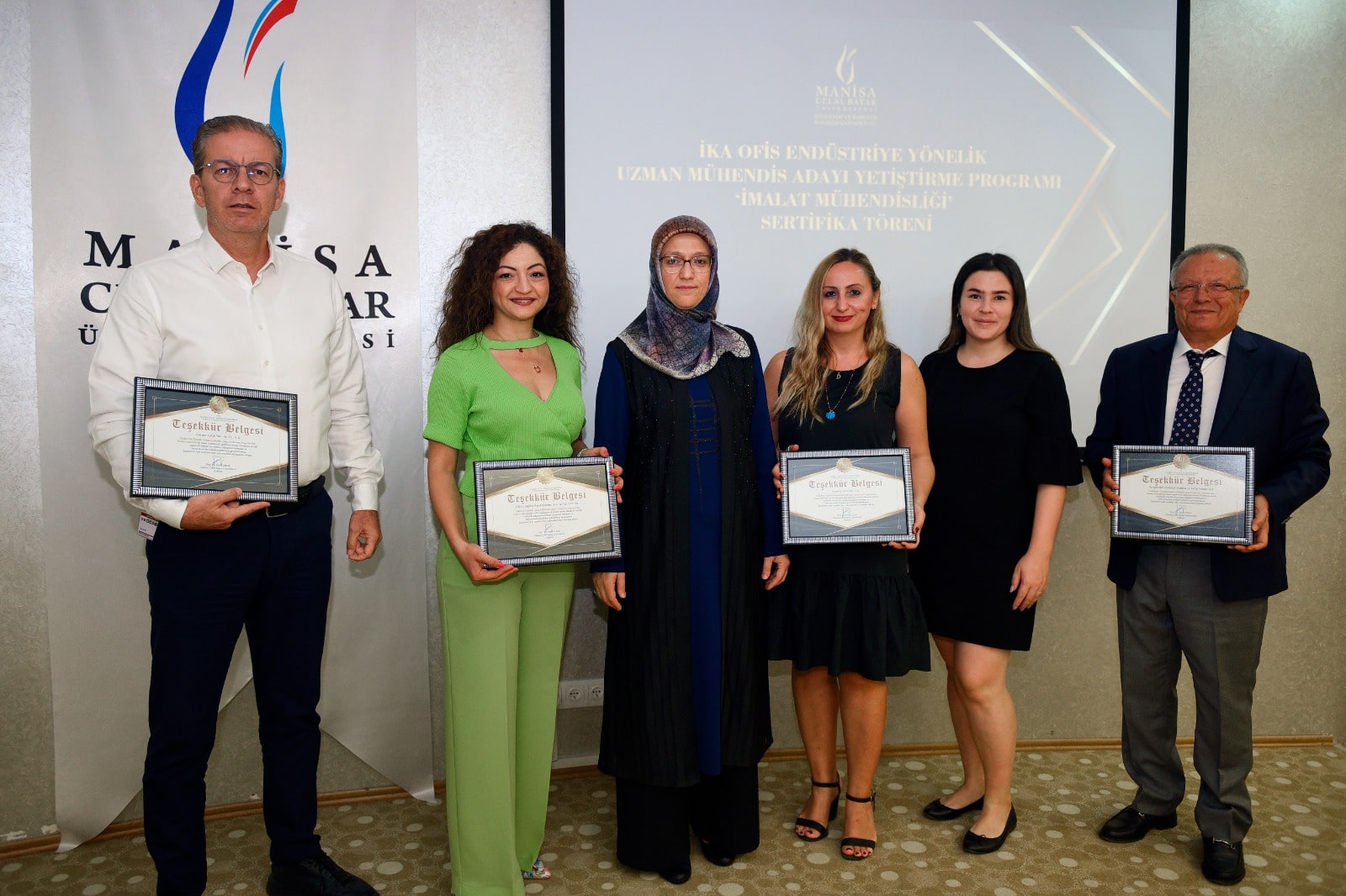Söz konusu törene Rektörümüz Prof. Dr. Rana KİBAR, Rektör Yardımcılarımız Prof. Dr. Ahmet ÇETİN, Prof. Dr. Kadir AY, Rektör danışmanı Prof. Dr. Ali DEMİR, programa aktif katılan firmalardan Sarıgözoğlu Hidrolik Makina ve Kalıp San. A.Ş.’den Sayın Mustafa SARIGÖZOĞLU, Kocaer Çelik San. A.Ş.’den Genel Müdür Yrd. Sayın Taylan AY, Manisa Kalıp ve Makina Üreticileri Birliği’ni (MAKİM) temsilen Sayın Hüseyin ÖZGÜL, Norm Cıvata San. A.Ş.’den Sayın Görkem NALÇACI, EKO Forging Soğuk Dövme San. ve Tic. Ltd. Şti.’den Sayın Esra SARSIER, Teleset Elektromekanik Sanayi ve Ticaret A.Ş.’den Sayın Sadiye TOMUR, NETFORM Mühendislik Makina Metal Ltd. Şti.’den Sayın Tuğçe ALTINKAYA, İzeltaş İzmir El Aletleri San Tic. A.Ş.’den Sayın Eda ÖZCOŞKUN, Dikkan Gemi ve Endüstriyel Vana Sanayi Ticaret A.Ş.’den Sayın Süveyla GÜMÜŞ, Üniversitemiz TEKNOKENT-AKÜM’ü temsilen Öğr. Gör. Abdurrahman Burak PALA, Sertur Plastik San. ve Tic. Ltd. Şti. ile Teknika Plast Teknik Kalıp Plastik Sanayi Ticaret A.Ş. temsilcileri, programa katılan öğrenciler, programa katkı sunan Üniversitemiz öğretim üyeleri Prof. Dr. Enver ATİK, Doç. Dr. Ahu ÇELEBİ, Dr. Öğr. Üyesi Tuğçe YAĞCI ile Dr. Öğr. Üyesi Hüseyin Erdem YALKIN ve Koordinatörlüğümüz yönetici ve personelleri katılmıştır.